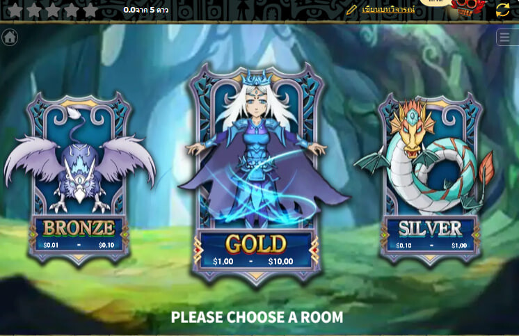 - เกมเริ่มต้นด้วยการเลือก "ห้อง" หรือเลเวลที่คุณต้องการเล่น อ่านเพิ่มเติมเกี่ยวกับเรื่องนี้ได้ในหัวข้อถัดไปของรีวิวสล็อตนี้