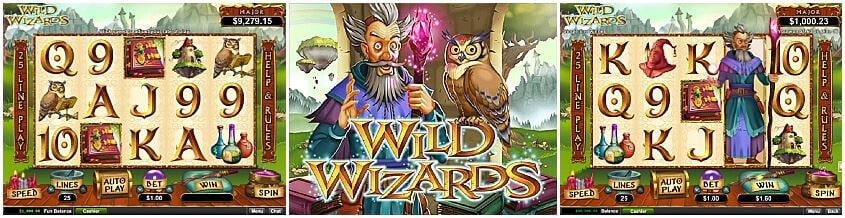Wild Wizards มีโบนัสและโหมดลับมากมายให้ปลดล็อก ขั้นแรก เมื่อหมุนไทล์พ่อมด พ่อมดจะปรากฏตัวขึ้นเพื่อครอบคลุมทุกตำแหน่งบนรีลนั้นและแทนที่สัญลักษณ์อื่นๆ ทั้งหมด สามารถเดิมพันแบบสแคทเตอร์ได้โดยหมุน Book of Spells สาม สี่ หรือห้าครั้งในตำแหน่งใดก็ได้