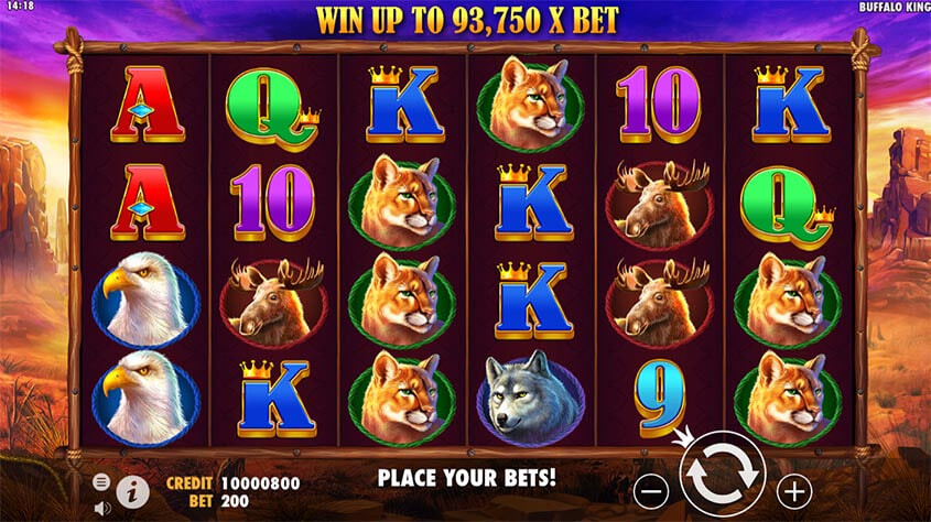Buffalo Kingเป็นสล็อตออนไลน์ที่พัฒนาโดยPragmatic Playมี 6 วงล้อ 4 แถวและมี 4,096 วิธีในการชนะ