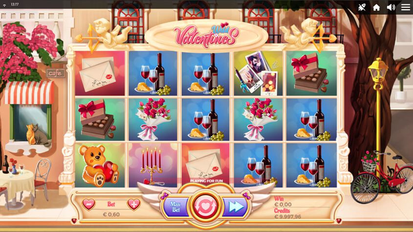 Wild Valentines เป็น สล็อตธีมโรแมนติกเกมหนึ่งที่เราเปิดให้เล่นฟรีที่ Slots Temple ตามชื่อเกม สล็อตนี้เป็นเรื่องเกี่ยวกับวันศุกร์ที่ 14 ซึ่งเป็นวันที่เราเฉลิมฉลองกับคู่รักหนุ่มสาวที่ค้นพบความรักซึ่งกันและกัน ฉากในเกมดูเหมือนกับว่ากำลังถ่ายทำที่ถนนในฝรั่งเศส สล็อตทั้งหมดได้รับการออกแบบอย่างสวยงามด้วยสีสันที่อ่อนโยนและสว่างไสว โดยทั้งหมดเป็นโทนสีชมพูและสีครีมเพื่อเพิ่มความรู้สึกโรแมนติก
