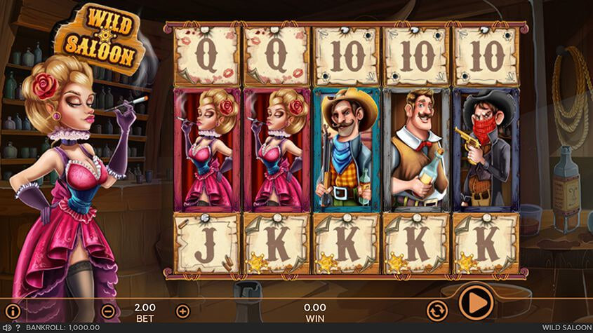 วงล้อจะเต็มไปด้วยโจรและคาวบอย นอกจากสัญลักษณ์ที่แปลกใหม่บนตารางการจ่ายเงินแล้ว Wild Saloon ยังใช้สัญลักษณ์ที่คุ้นเคยอย่าง A, K, Q, J และ 10 สัญลักษณ์เหล่านี้ให้ความรู้สึกเหมือนโปสเตอร์ประกาศจับและถูกติดไว้บนผนังของร้านเหล้า บางตัวมีรอยกระสุน ในขณะที่ Q มีรอยจูบลิปสติกอยู่ทั่ว และ K มีตราของนายอำเภอติดอยู่ที่มุม