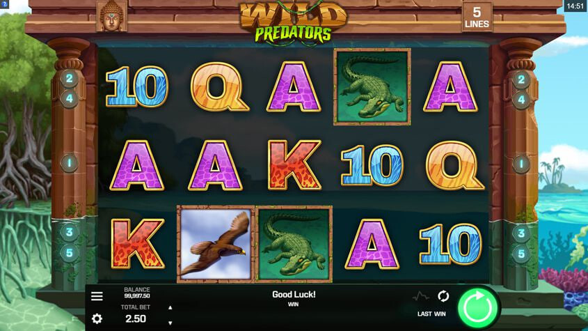 Wild Predators เป็นวิดีโอสล็อตออนไลน์จาก Golden Rock Studios แม้ว่าจะเป็นบริษัทใหม่ แต่ Golden Rock Studios ก็มีชื่อที่คุ้นเคยจากอุตสาหกรรมเกมที่มีชื่อเสียง ดังนั้นความคาดหวังต่อชื่อเกมใหม่ล่าสุดของพวกเขาจึงสูงมาก คุณสามารถลองเล่นสล็อต Golden Rock Studios ที่คุณชื่นชอบได้ รวมถึงสล็อตออนไลน์ Jungle Giants ที่นี่ หรือลองเล่น สล็อตธีมสัตว์อื่นๆที่นี่ก็ได้