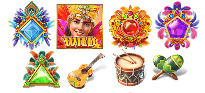 ส่วนสัญลักษณ์จ่ายรางวัลของเกม ริโอ แฟนตาเซีย สล็อต PG ทั้ง