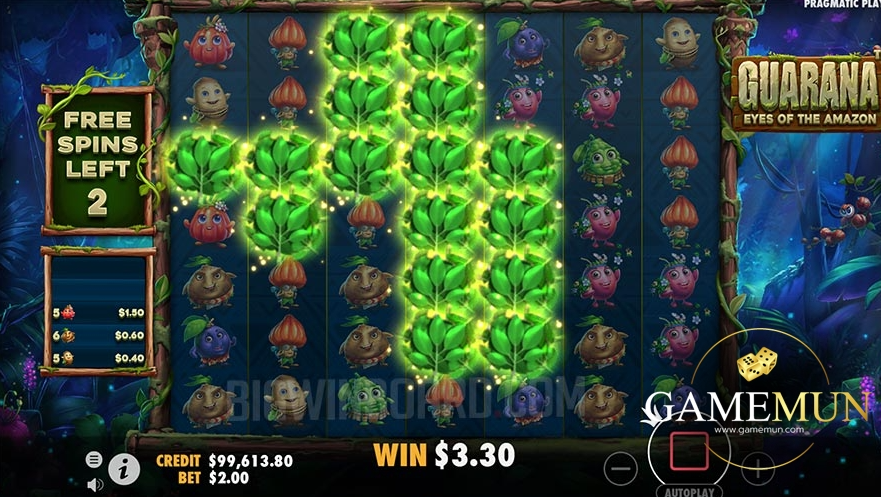 ทดลองเล่นGuarana Eyes of the Amazon นี่คือสัญลักษณ์ บลูเบอรี่ จ่ายเงินรางวัลที่จ่ายสูงที่สุดในเกมเป็นอันดับที่ 3 เมื่อมีการปรากฎของสัญลักษณ์นี้ จะมีการจ่ายเงินรางวัลตั้งแต่ 0.5x – 60x เท่าของยอดเดิมพัน sca68-th