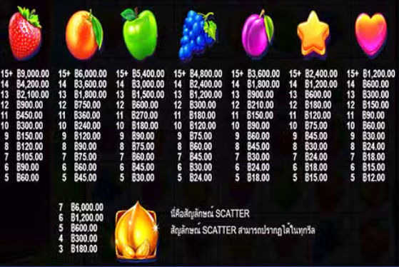 สล็อตFruit party 2 เกมสล็อตวิดีโอที่มีขนาดวงล้อ 7 รีล 7 แถว มีวิธีในการจ่ายเงินรางวัลแบบล็อคผลไม้ชนิดเดียวกันทั้งหมดเริ่มตั้งแต่ 5 ตัวขึ้นไป มีคุณสมบัติพิเศษของสัญลักษณ์ Wild ที่มีจะอัตราการคูณเงินรางวัลติดมาด้วยเริ่มต้นที่ 2x ไปจนถึงคูณเงินรางวัลมากที่สุด 256x เท่าในเกมหลักหรือสัญลักษณ์ Wild ในฟีเจอร์ฟรีสปินก็จะมีการสุ่ม Wilds ลงบนวงล้อเหมือนเดิมแต่จะมีตัวคุณสูงที่สุดถึง 723x เท่าในแต่ละสัญลักษณ์ Wild โดยการสุ่มลงแต่ละครั้งก็จะสุ่มทั้งจุดที่ปรากฎและสุ่มอัตราการคูณ พร้อมคุณสมบัติการชนะรางวัลอย่าง Tumbling ภายในเกมสล็อตนี้ ที่จะช่วยให้ชนะเงินรางวัลได้อย่างต่อเนื่อง พร้อมค่าความผันผวนการออกเงินรางวัลถึง RTP: 96.53% และมีอัตราการจ่ายเงินรางวัลสูงที่สุดของเกมถึง 5,000x เท่าของยอดเดิมพัน พร้อมความสนุกมากมายที่ภายในเกมได้เตรียมไว้ให้อย่างจุใจ ทดลองเล่นสล็อตได้ผ่านเว็บไซต์เกมสล็อตอย่าง sca68-th แล้ววันนี้!!!
