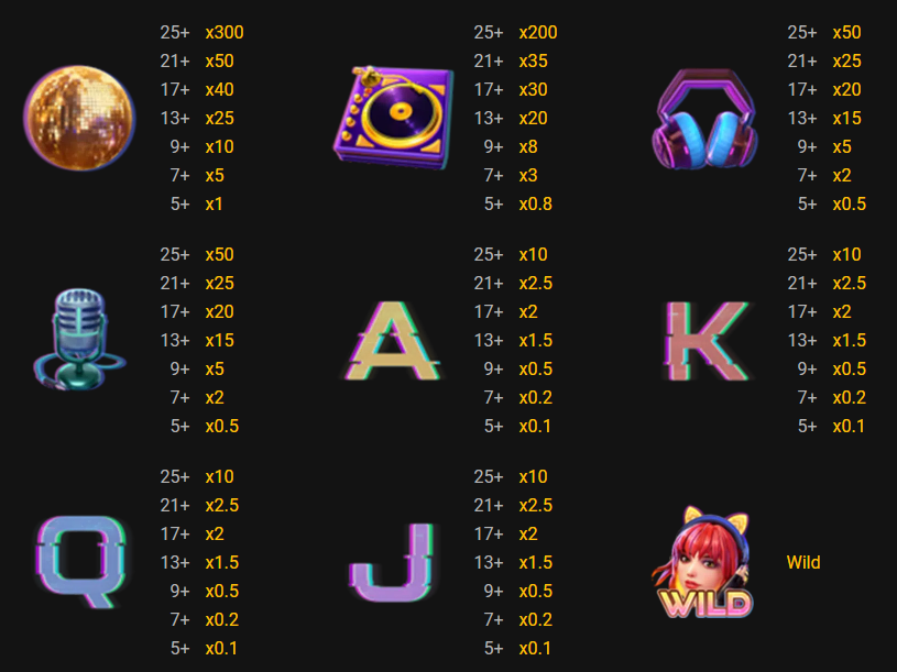 - การชนะรางวัลใดก็ตามที่มีสัญลักษณ์ที่มีส่วนร่วมกับจุดเปิดใช้งานสีแดงจะเปิดใช้งานฟีเจอร์ Wild ดีเจย์