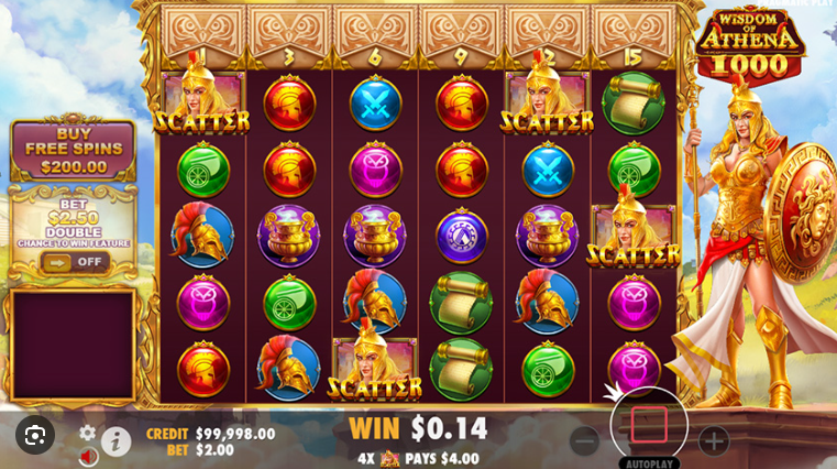 รูปแบบเกมสล็อต เทพีเอเธนา Wisdom of Athena 1000