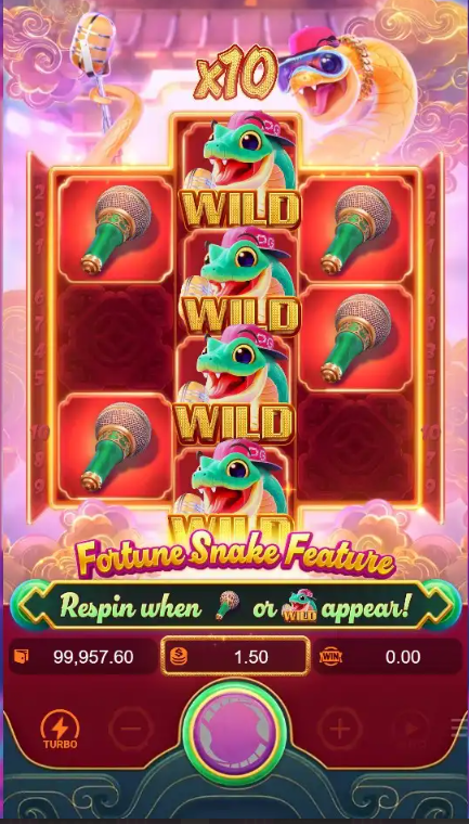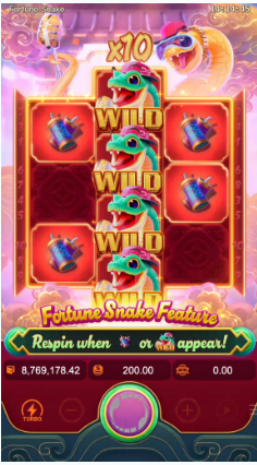 - Fortune Snake คือวิดีโอสล็อต 3 รีล (3 แถวในรีล 1 และ 3 และ 4 แถวในรีล 2) ที่มีการหมุนซ้ำและ Wild แบบซ้อนพร้อมตัวคูณ x10