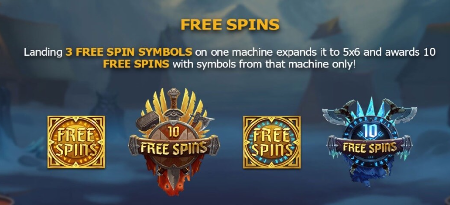 - สัญลักษณ์ฟรีสปิน 6 อันในเกมหลักจะนำผู้เล่นไปสู่ Ragnarok Free Spins ที่ซึ่งการต่อสู้ขั้นสุดยอดเกิดขึ้น