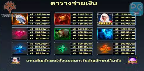 - สัญลักษณ์ Wild เป็นรูป หญิงสาว ที่เป็นสัญลักษณ์ตัวแทนที่สามารถแทนทุกสัญลักษณ์ภายในเกมได้ ยกเว้น Scatter
