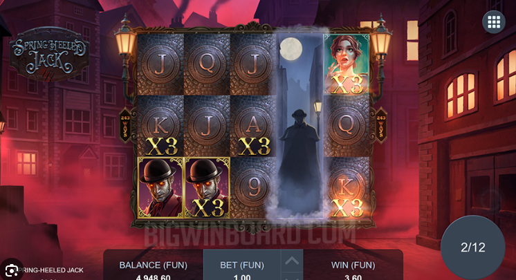 ลองเล่นสล็อต Spring Heeled JackSlot Demo เป็นเกมสล็อตที่มี 5 รีล และมี 3 แถว มีสัญลักษณ์ Mystery Symbols ที่จะปรากฎได้ในรีลที่ 2, 3 และ 4 เท่านั้น โดยจะปรากฎมาซ้อนกัน 3 สัญลักษณ์เสมอ สัญลักษณ์ Mystery Symbols จะเปลี่ยนเป็นสัญลักษณ์บนรีลก่อนหน้า แล้วถึงจะทำการจ่ายรางวัล