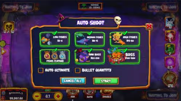 - เลือกยิงปลาที่มีขนาดใหญ่และตัวคูณคะแนนสูง