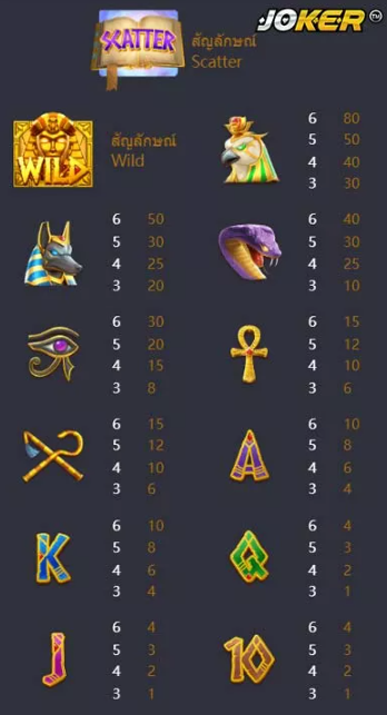 สัญลักษณ์ อะนูบิส อัตราการจ่ายเงินรางวัลสูงสุดของเกม อยู่ที่ x50