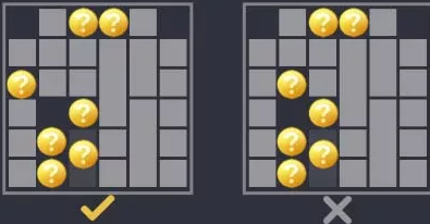 - จำนวนรวมวิธีเดิมพันที่ชนะรางวัลของสัญลักษณ์แต่ละตัวนั้นคำนวณตามจำนวนทวีคูณของสัญลักษณ์ที่ชนะรางวัลที่ติดกันกับสัญลักษณ์แต่ละตัวจากเพดานซ้ายสุดไปทางขวา