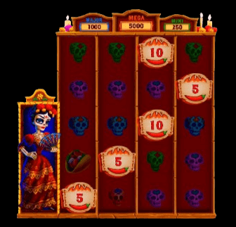- ในช่วงฟีเจอร์ Catrina’s Magic จะมีการเพิ่มสูงสุด 3 แถวเหนือ 2-5 วงล้อ
