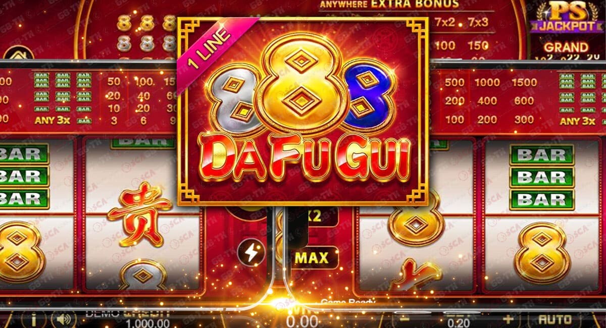 เกมสล็อต 888 DAFUGUI มีลักษณะเป็นเกมสล็อตออนไลน์ที่มีรูปแบบการเล่นคล้ายกับเกมสล็อตทั่วไป โดยมีการหมุนวงล้อในเกมและผู้เล่นต้องคาดเดาผลลัพธ์ของการหมุนวงล้อว่าจะปรากฏสัญลักษณ์เดียวกันหรือไม่ หากปรากฏสัญลักษณ์เดียวกันต่อเนื่องในเครื่องหมายชนะ ผู้เล่นจะได้รับรางวัลตามตารางการจ่ายเงินที่กำหนดไว้ในเกม.