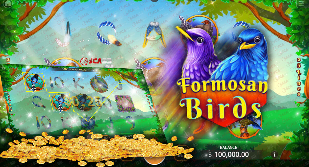 - ฟีเจอร์การเล่น Scatter: สัญลักษณ์ Scatter ในเกม Formosan Birds เป็นนกบิน ซึ่งฟีเจอร์ Scatter นี้จะช่วยให้ผู้เล่นสามารถเข้าสู่ฟีเจอร์ Free Spins ได้ง่ายขึ้น เมื่อผู้เล่นได้รับสัญลักษณ์ Scatter 3 ตัวขึ้นไป จะได้รับโอกาสในการเล่นฟรีโบนัสซึ่งจะช่วยเพิ่มโอกาสในการชนะรางวัลอย่างมาก