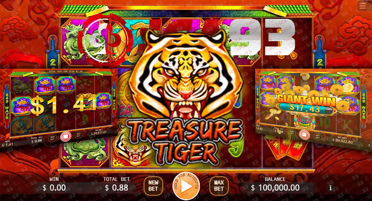 เมื่อเริ่มเล่นเกม ผู้เล่นจะต้องหมุนวงล้อและรอให้ได้รับการจ่ายเงินจากการจับสัญลักษณ์ หากผู้เล่นสามารถจับสัญลักษณ์เสือภูเขาได้บนวงล้อ 5 ทุกตัว จะได้รับเงินรางวัลสูงสุด 10,000 เท่าของเงินเดิมพันต่อเส้นการจ่ายเงิน นอกจากนี้ Treasure Tiger ยังมีรางวัลอื่นๆ เช่น การเสริมสร้างวงล้อที่มีสัญลักษณ์เสือภูเขาเพิ่มขึ้น และการรวมสัญลักษณ์ที่เหมือนกันเพื่อเพิ่มโอกาสในการชนะ